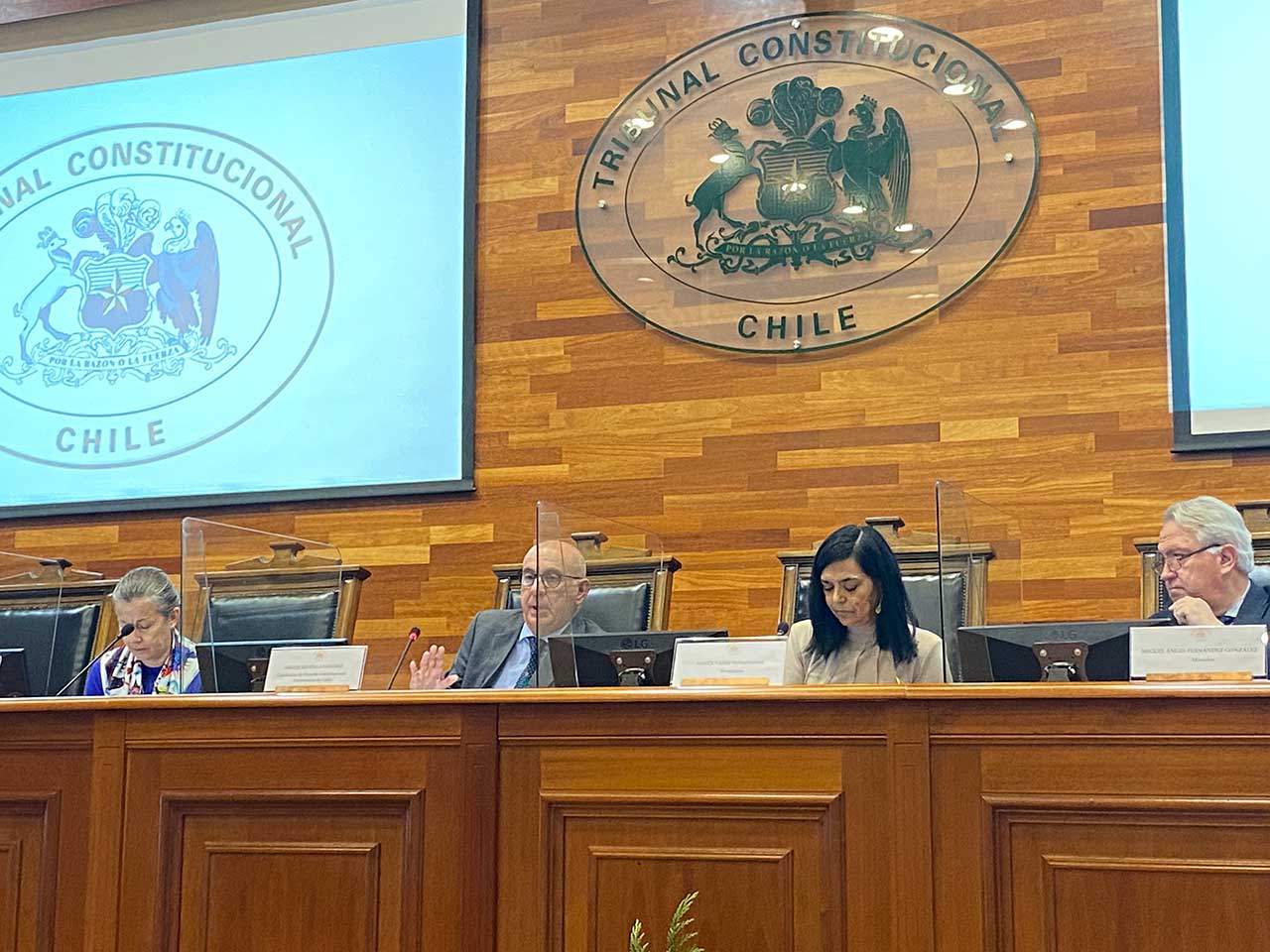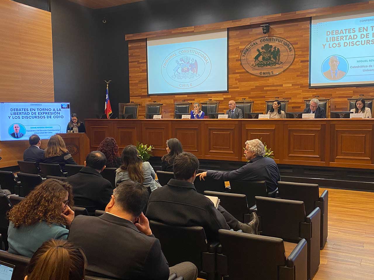 El catedrático de Derecho Constitucional de la Universidad de Cádiz, Miguel Revenga Sánchez, dictó la conferencia “Debates en torno a la libertad de expresión y los discursos de odio” este 5 de septiembre en la Sala de Audiencias del Tribunal Constitucional. Asistieron la Presidenta del Tribunal Constitucional, Ministra Nancy Yáñez, la Ministra María Pía Silva, El Ministro Miguel Ángel Fernández, la Ministra Daniela Marzi y la Suplente de Ministro, Sra. Natalia Muñoz. Además, se contó con la presencia de la Directora del Museo de la Memoria, Sra. María Fernanda García; la Directora de Derechos Humanos de la Fiscalía Nacional, Sra. Alejandra Seguel; la abogada de la Defensoría Penal Pública, profesora Ingrid Kaempfe y del Señor Francisco Estévez, ex Director del Museo de la Memoria. A la actividad académica también fueron invitados los profesionales, funcionarios y funcionarias de esta Magistratura.