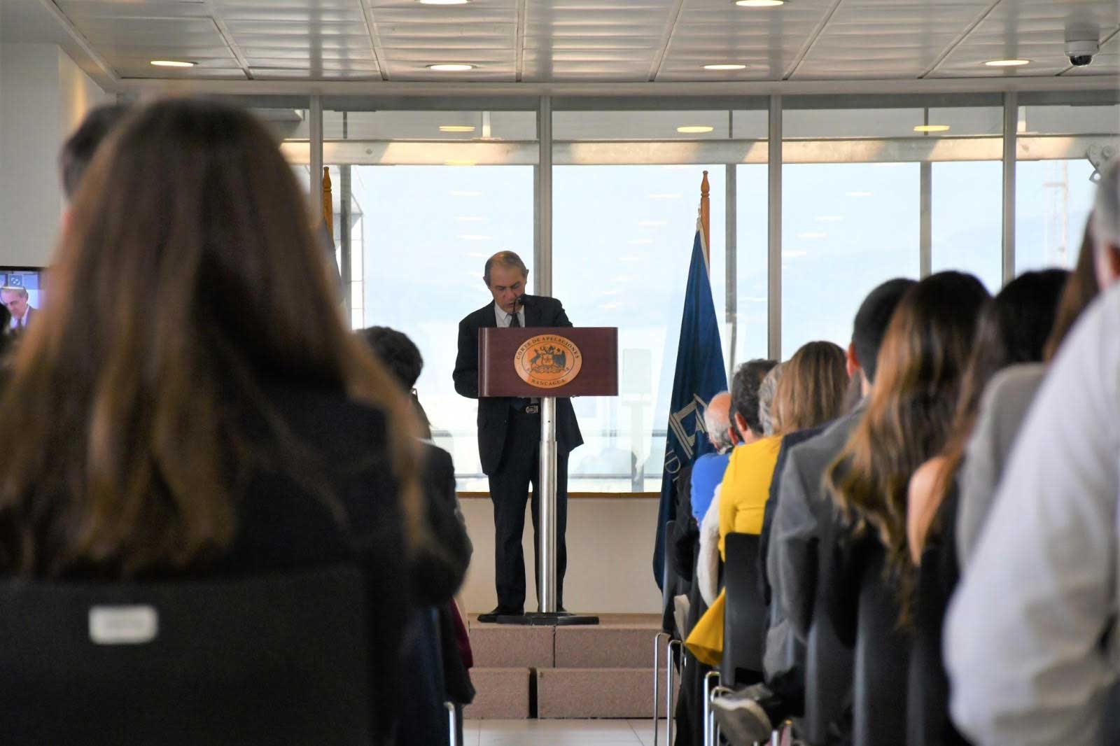 Al evento asistieron los ministros, ministras y fiscales judiciales del Tribunal de alzada, el defensor regional Claudio Aspe Letelier y el jefe de la carrera de Derecho de la Universidad de O’Higgins, Marcelo Acuña Bustos, otras autoridades y estudiantes de Derecho de la Región.