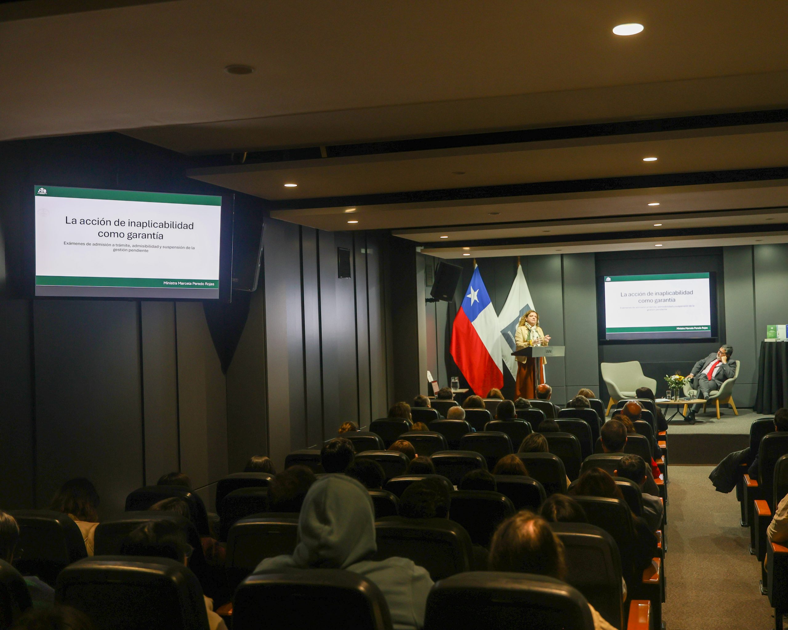 En el evento académico, la Ministra Peredo abordó los aspectos más relevantes de la acción de inaplicabilidad por inconstitucional vista como garantía. De esta forma, inició su presentación, recalcando el sentido de la Constitución y la acción de inaplicabilidad, destacando su rol garantista en el marco de los derechos fundamentales. Luego, se refirió a su consagración en la Carta fundamental y a los distintos requisitos que la misma contempla para las distintas fases de tramitación de la acción. Finalmente, habló sobre la figura de la suspensión y su importancia como una medida cautelar que corresponde a una herramienta indispensable para que el Tribunal Constitucional garantice la efectividad de sus sentencias.