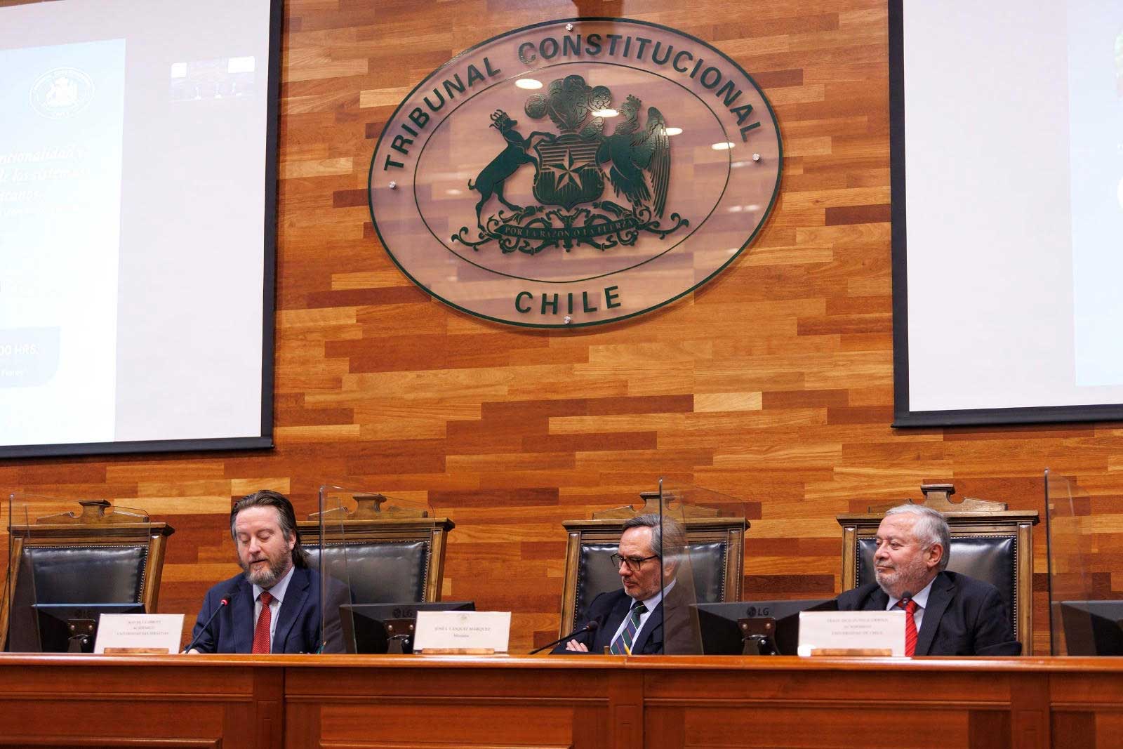 El miércoles 28 de agosto, el ministro del Tribunal Constitucional (TC), Sr. José Ignacio Vásquez Márquez, expuso sobre la obra “El control de convencionalidad y la transformación de los sistemas jurídicos interamericanos”, que se lanzó en Chile, en la Sala de Audiencias de esta Magistratura. La actividad académica, contó con la presencia la Pdta. del TC, ministra Daniela Marzi; de los ministros/as: Miguel Ángel Fernández, Héctor Mery y Marcela Peredo. También asistieron autoridades académicas de la Universidad San Sebastián (USS), en la que el autor de la obra es profesor.