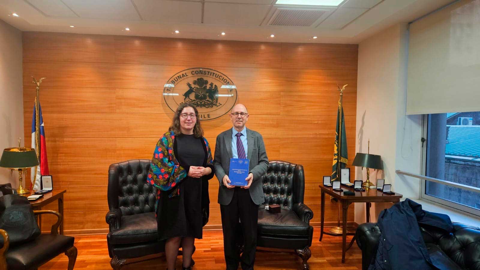 EL 3 de abril, EL Pleno de Ministras y Ministros del Tribunal Constitucional (TC), sostuvo un diálogo con el catedrático de la Universidad de Barcelona, Phd. Josep Maria Castellà Andreu, quien visitó Chile para participar en el seminario internacional organizado por esta Magistratura “Avances y desafíos de la justicia constitucional a 20 años de la Reforma” de la Carta Fundamental. El académico español fue recibido por la Presidenta del Tribunal, Daniela Marzi Muñoz, quien le entregó un ejemplar del libro “Constituciones Políticas de la República de Chile 1810 – 2024”, en su tercera edición.