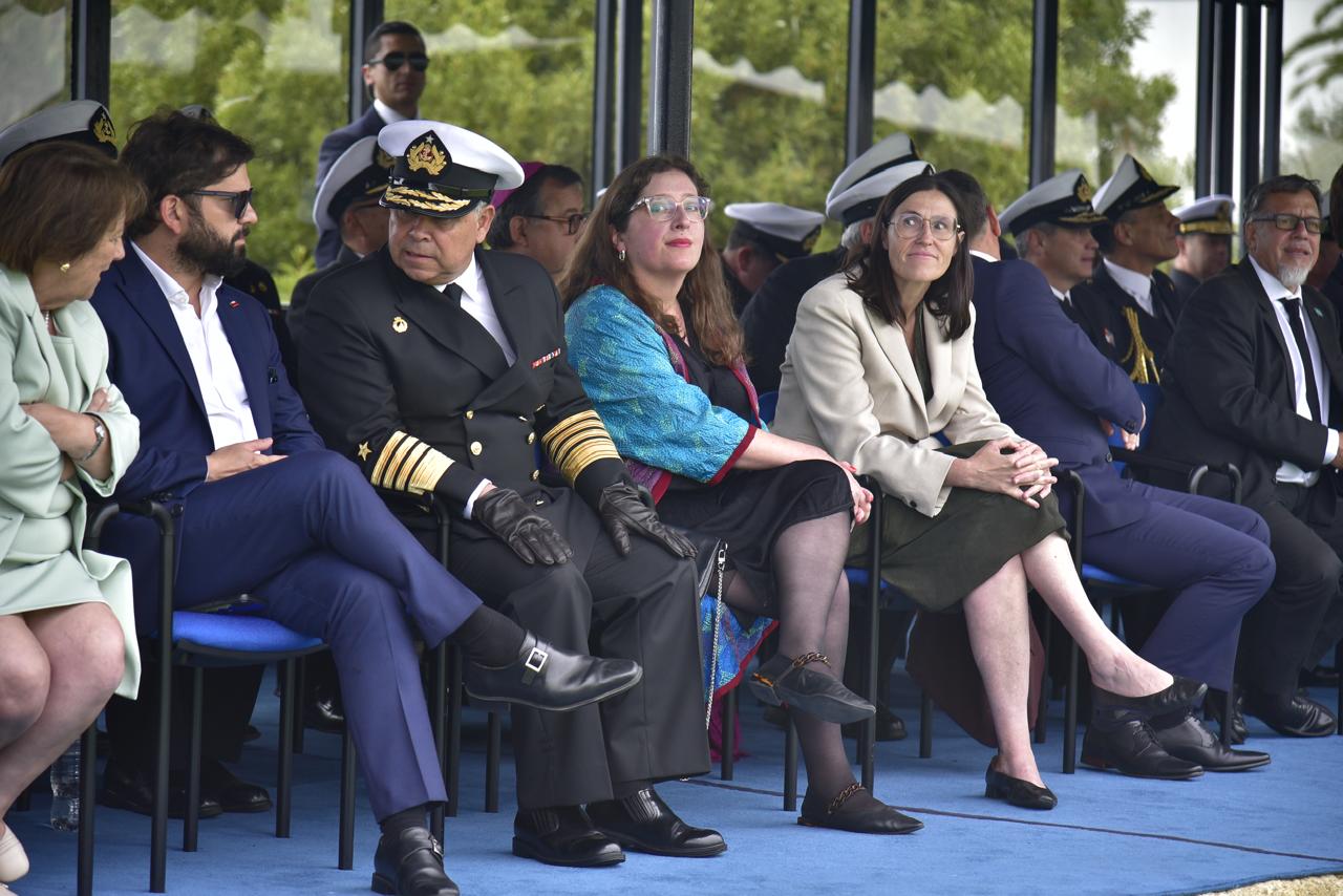 La Ministra Daniela Marzi Muñoz, máxima autoridad del Tribunal Constitucional, participó el miércoles 10 de diciembre, en la ceremonia de Investidura de los Oficiales 2025 que egresaron de la Escuela Naval “Arturo Prat”. El evento realizado en el Patio de Honor del recinto fue encabezado por el Presidente de la República, Gabriel Boric Font; la Ministra de Defensa Nacional, Adriana Delpiano, el Comandante en Jefe de la Armada, Almirante Fernando Cabrera Salazar; junto a otras autoridades civiles, militares e invitados especiales.