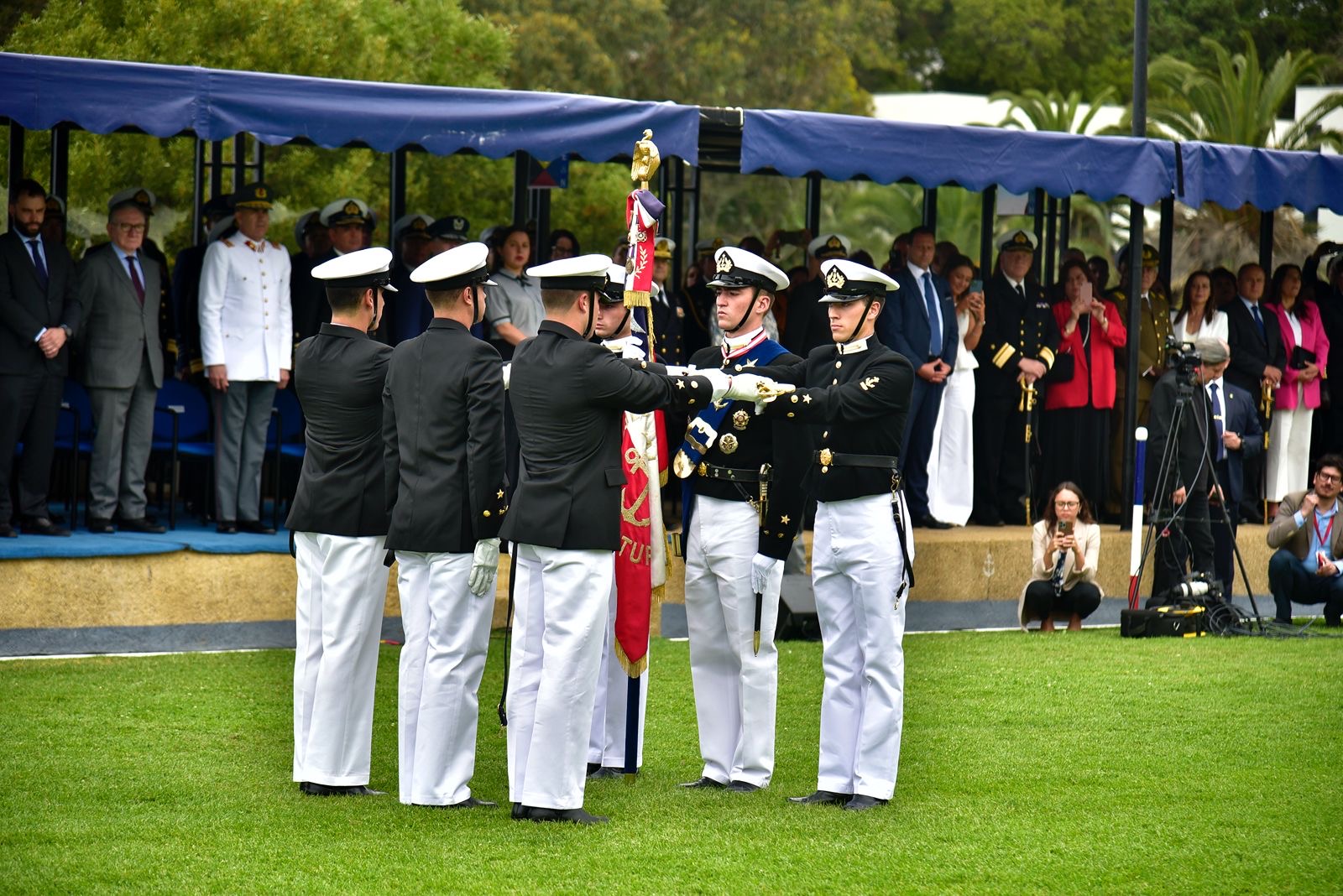 La “Ceremonia de Investidura de Oficiales 2025” es el hito más significativo luego de cuatro años de formación. En la ceremonia, los egresados recibieron sus espadas, símbolo de mando, con la cual efectuaron el Juramento a la Bandera, reafirmando su vocación de servicio y fidelidad a la patria. Esta generación está compuesta por 55 Guardiamarinas pertenecientes al Escalafón Ejecutivo e Ingenieros Navales, ocho de Infantería de Marina, 10 de Abastecimiento y 10 del Escalafón Litoral, junto con nueve Aspirantes a Oficial de Mar, y dos Brigadieres provenientes de Colombia, que egresaron con el grado de Teniente de Corbeta.