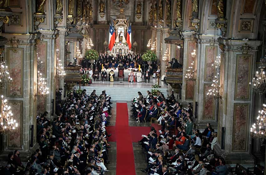 La Presidenta del Tribunal Constitucional (TC), ministra Daniela Marzi Muñoz, participó el 18 de septiembre en el tradicional Te Deum Ecuménico en la Catedral de Santiago, en donde las máximas autoridades del país oraron por Chile. La ceremonia religiosa fue celebrada por el arzobispo de Santiago, Fernando Chomalí. Con anterioridad, el domingo 15 de septiembre, la Pdta. Marzi, representó a este Tribunal en el Servicio de Acción de Gracias de las Iglesias Evangélicas de Chile, en la Iglesia Metodista Pentecostal ubicada en San Bernardo. Asimismo, asistió al encuentro organizado por la masonería chilena “Fraternitas de la República”, para festejar los valores patrios y la independencia del país. El lema de este encuentro fue “Preservar la democracia con integridad y tolerancia”.