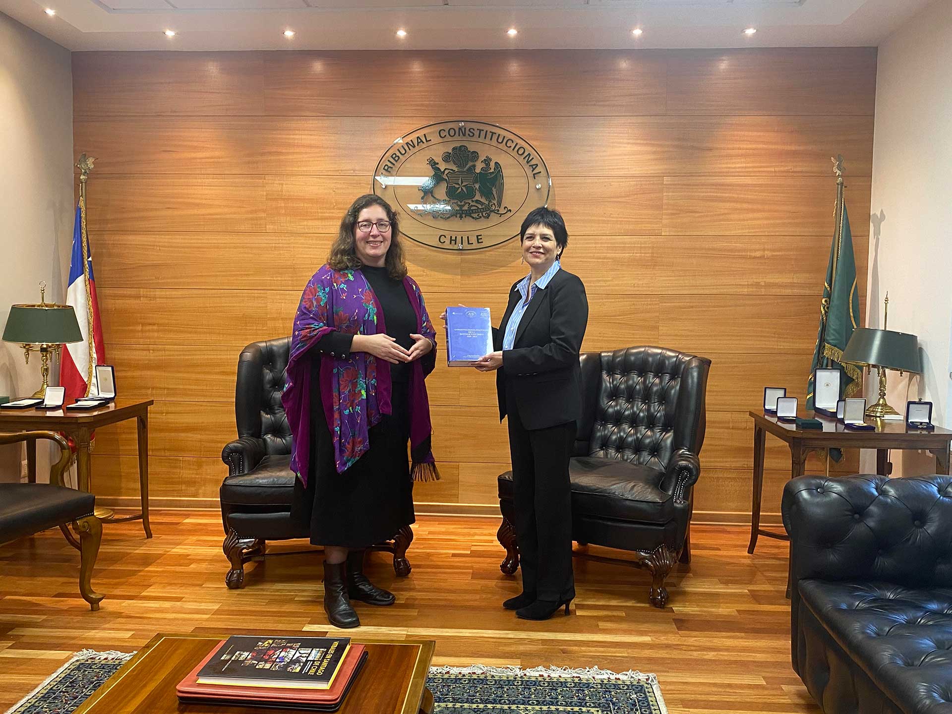 La presidenta de este Tribunal agradeció la presencia de los representantes de la Defensoría Penal Pública en los seminarios y otros eventos organizados por el TC. Invitó luego a profundizar en el ámbito de las actividades académicas. Finalmente, la magistrada Marzi entregó del libro editado en septiembre de 2024 “Constituciones políticas de la República de Chile: 1810 – 2024” a la nueva defensora nacional, ratificada por el Presidente de la República, Gabriel Boric Font, el 14 de mayo.
