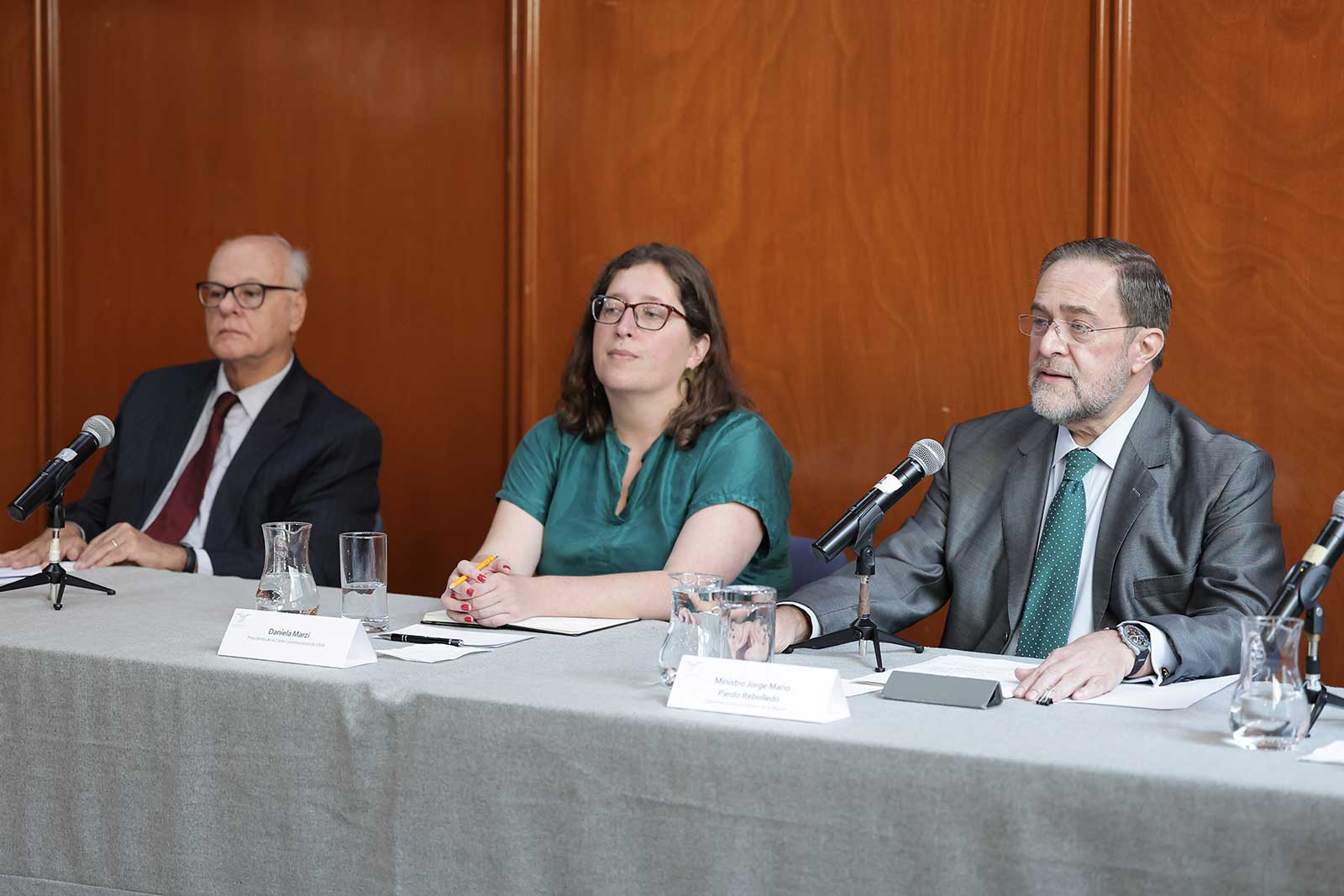 Al día siguiente, la Pdta. Daniela Marzi, participó en la reunión de colaboración para el intercambio de conocimientos a través de los centros de estudios constitucionales de Altos Tribunales de América Latina, organizada por la Suprema Corte de Justicia de la Nación (SCJN). También asistieron representantes de Costa Rica, Brasil, México y del Instituto Max Planck de Derecho Público Comparado y Derecho Internacional, y de la Corte IDH.