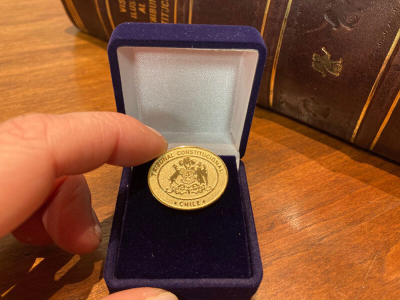 A la despedida, cada visitante extranjero recibió de regalo un prendedor con el escudo del Tribunal constitucional y a su vez el Presidente Cristián Letelier, recibió una pequeña réplica de la fachada de la Torre de Hassan, del siglo XII en la ciudad de Rabat.