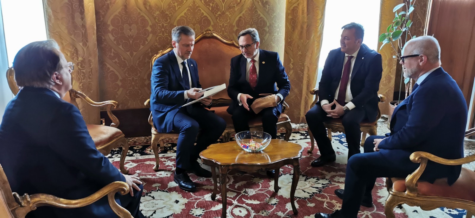 En el encuentro se abordaron los principales temas de la agenda política institucional internacional, con especial atención al reciente proceso constitucional en Chile, que situó la reforma de la Carta Magna en el centro del debate interno del país. El Ministro Vásquez expresó su admiración por la historia republicana de Venecia, recordando que fue conocida como la «Serenissima Reppublica», respetuosa de las libertades individuales y la separación de poderes.