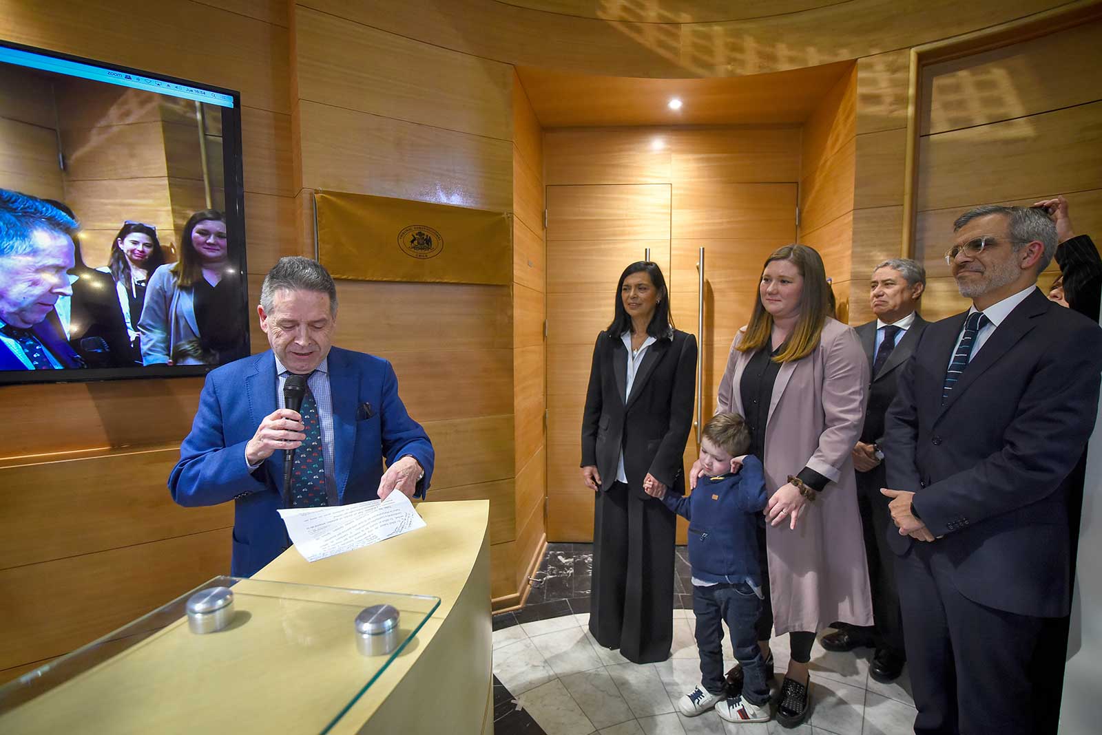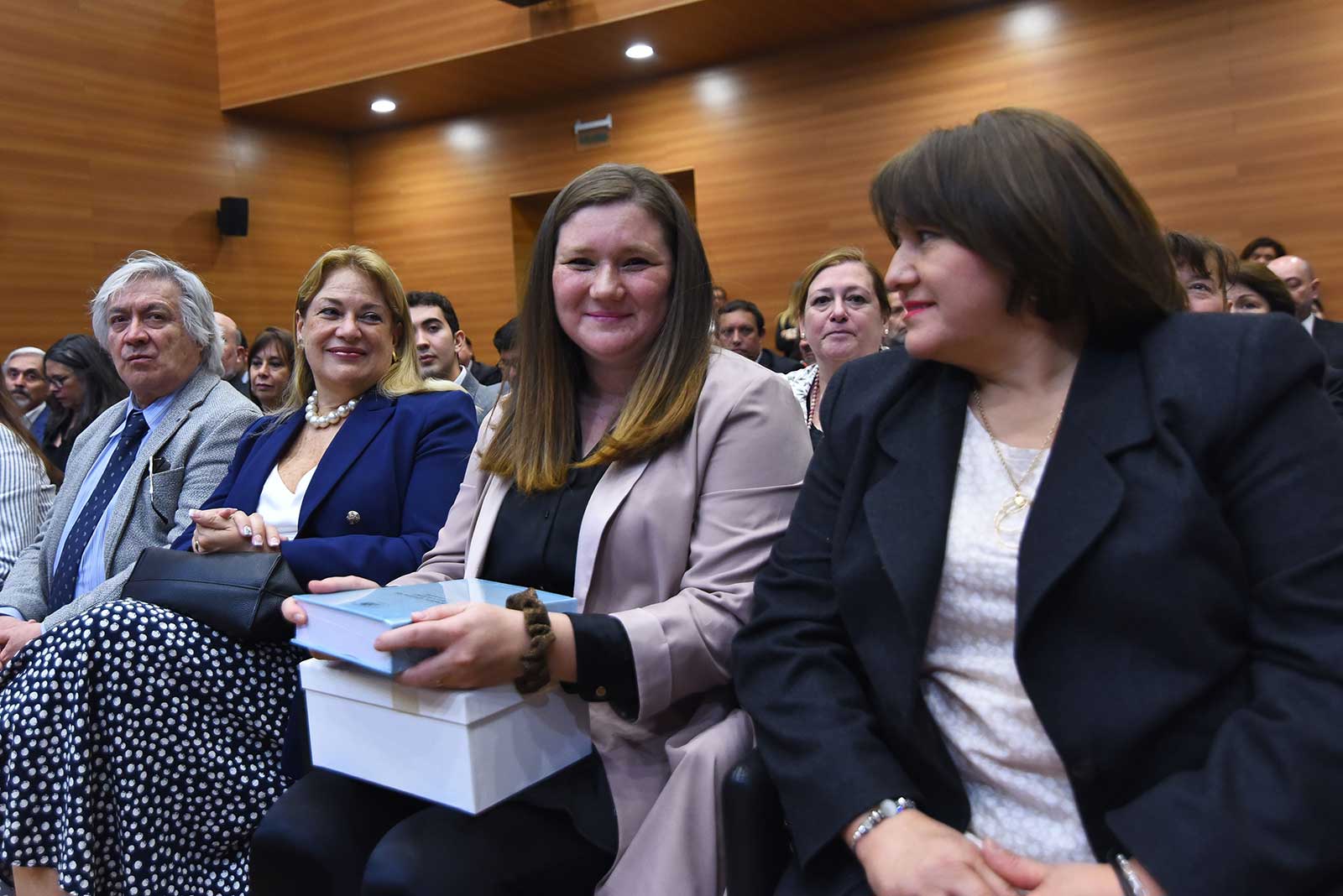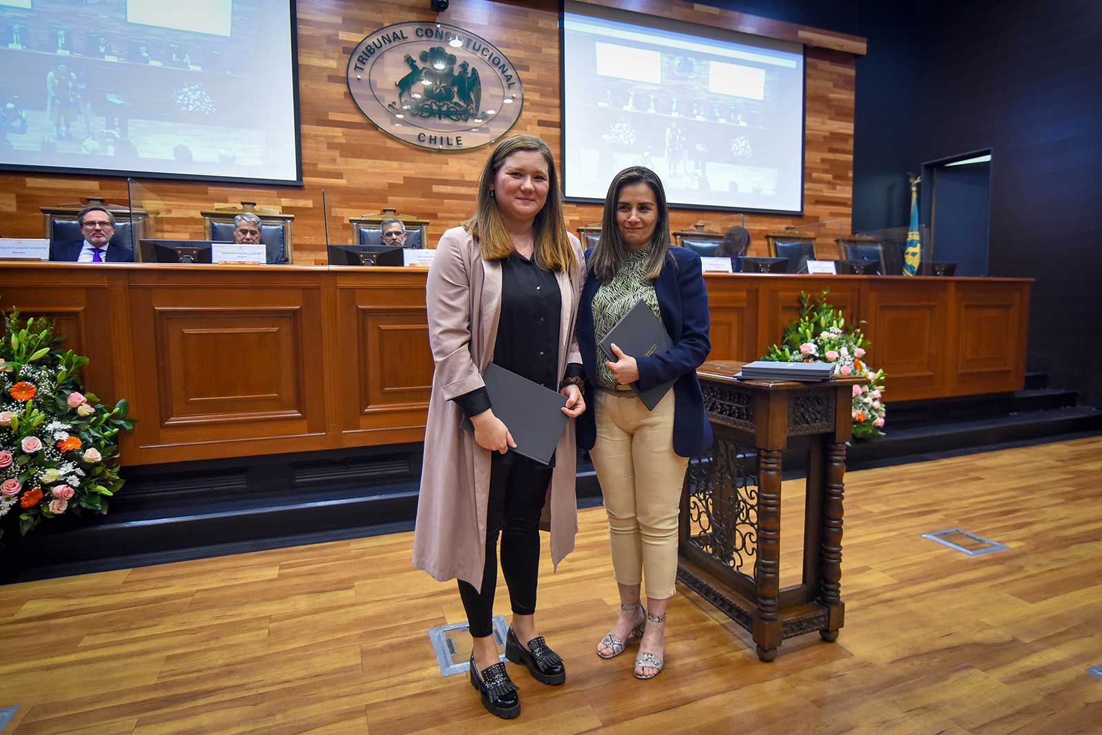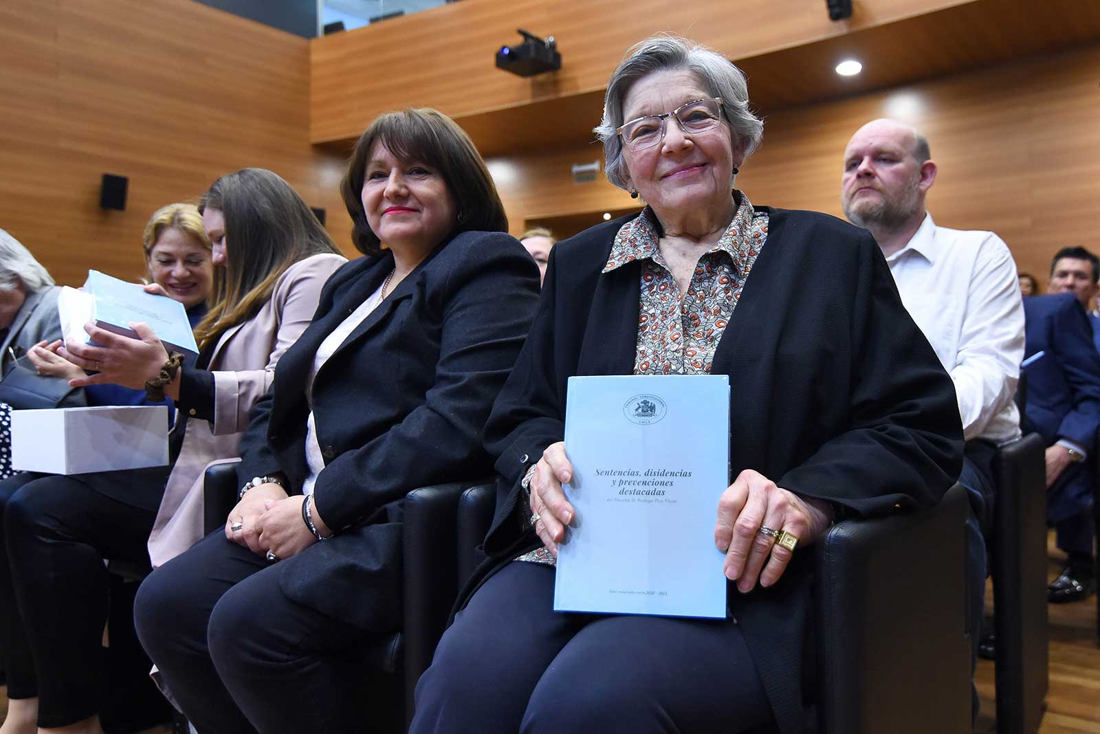 En otro momento de la ceremonia, los familiares más cercanos recibieron de manos de la Secretaria Abogada del TC, María Angélica Barriga, un libro que recopiló las condolencias que ingresaron a través de la página web del Tribunal y también por correo electrónico, tras la lamentable pérdida del 20 de junio de 2023.