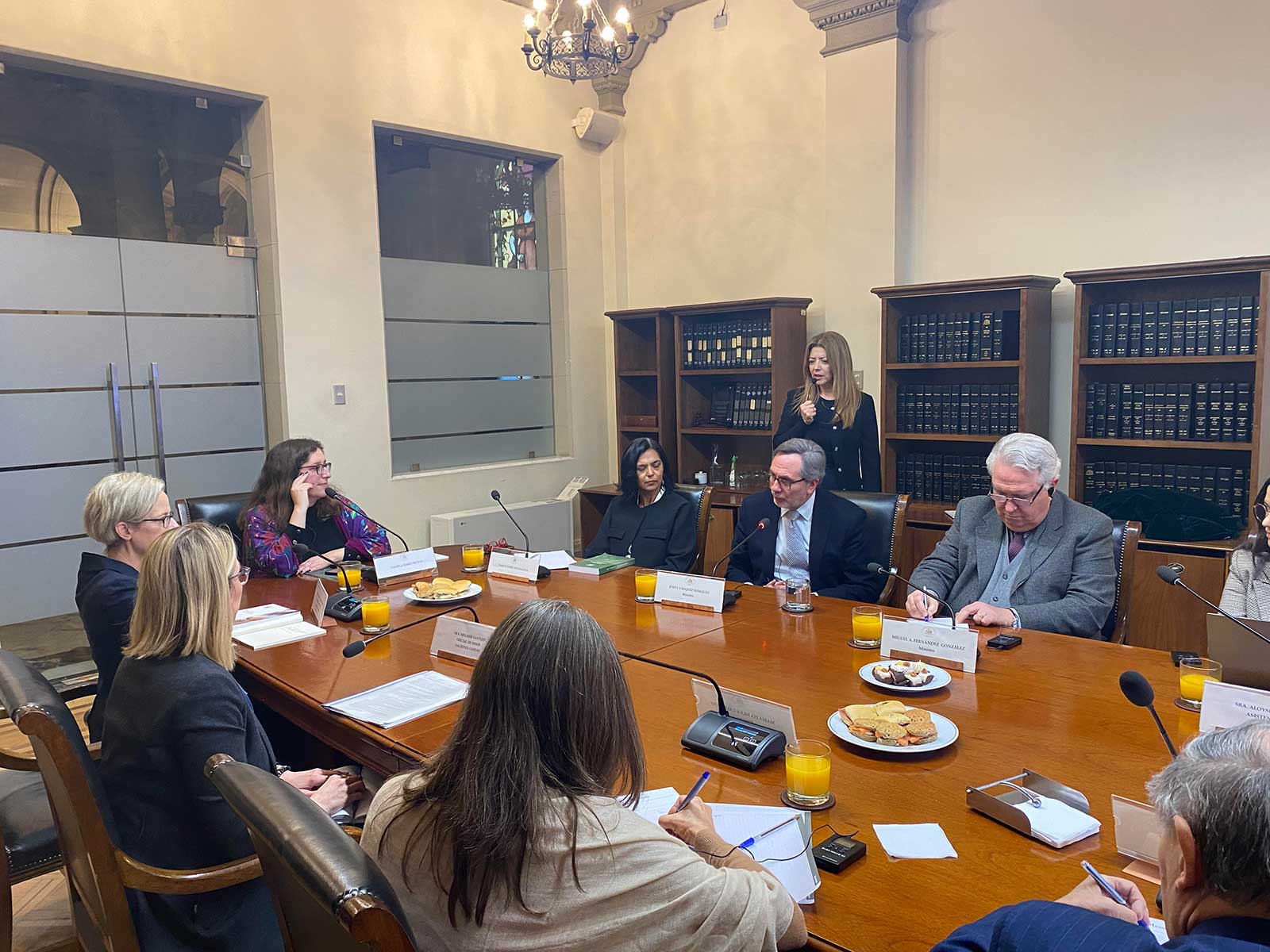 En la instancia de diálogo, se hizo un breve repaso de la historia constitucional del país, destacando que en el año 2005 se hizo una reforma relevante en la cual se incorporaron atribuciones que fortalecieron nuestra institucionalidad, pero también sobre las medidas que el Tribunal Constitucional ha ido tomando para asegurar su independencia. Un aspecto que se trató también fue la importancia de contar con el oportuno nombramiento de ministros/as titulares respetando el sistema que indica nuestra Constitución.